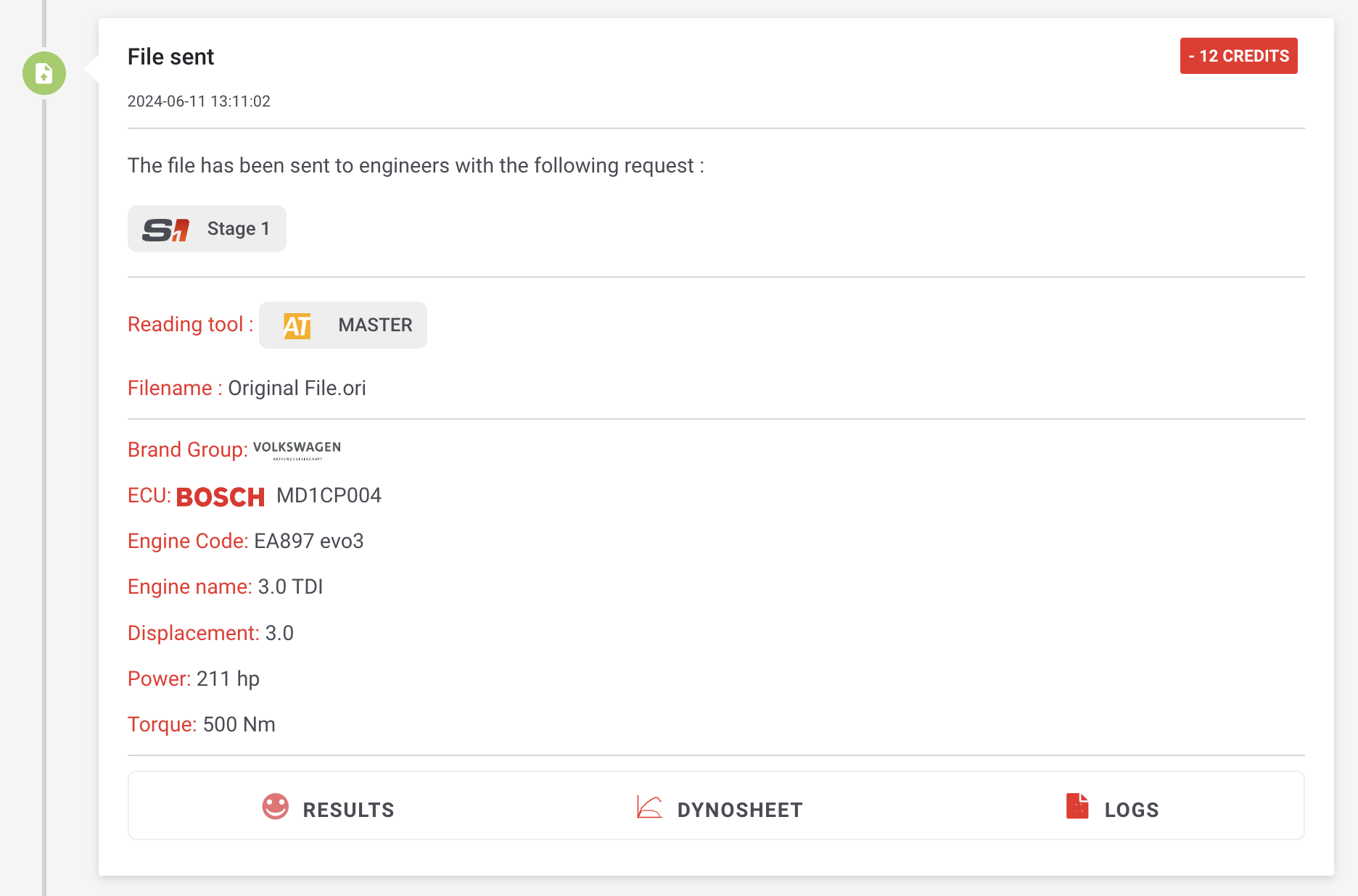 You can upload stock results, dynosheet and logs for the stock file. That will help our team make sure the tuned file is 100% adapted to the vehicle.