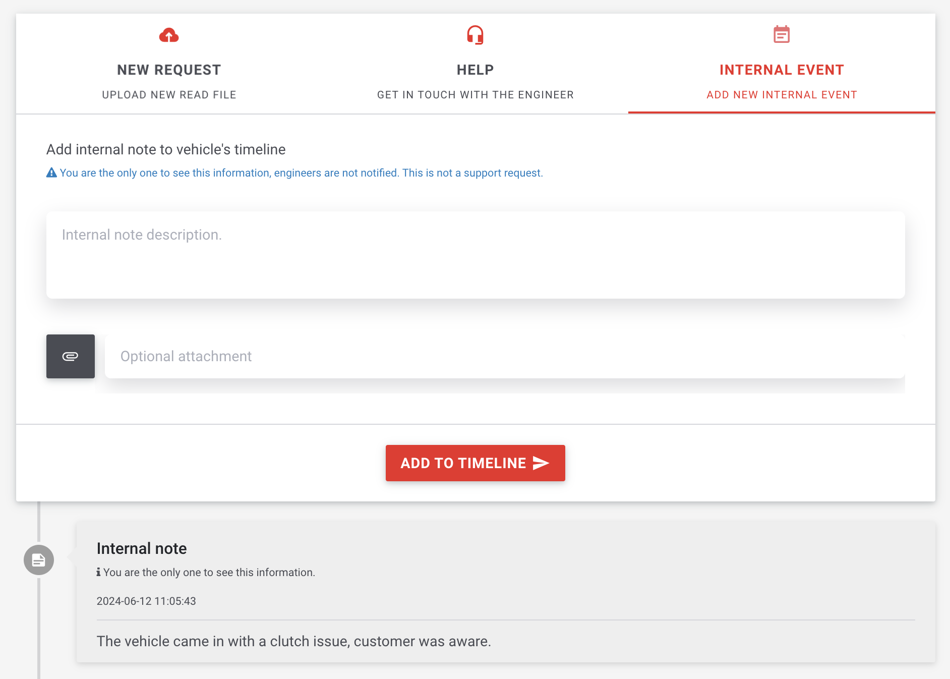 The third tab is for you only. It allows you to add specific note in the vehicle history which you will be the only one to see: