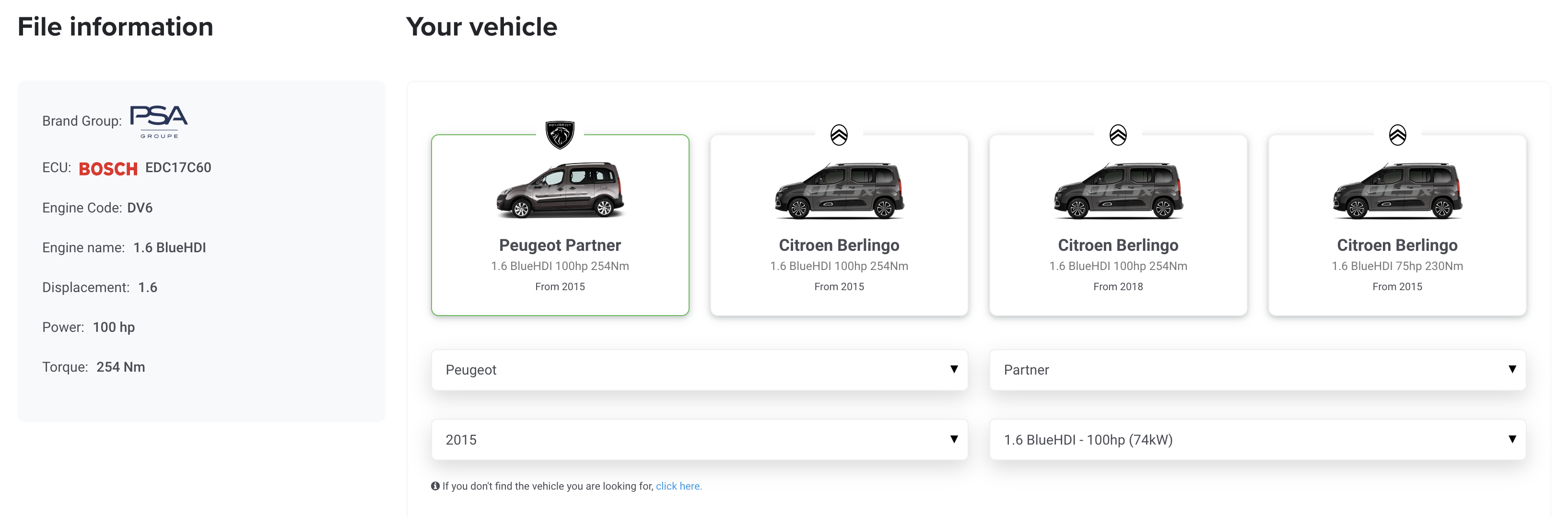 Vous verrez alors quelques suggestions concernant le modèle exact, la version et la puissance parmi lesquelles vous pourrez sélectionner le bon véhicule :